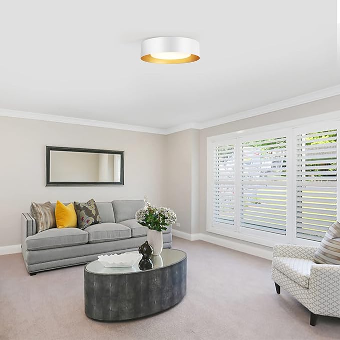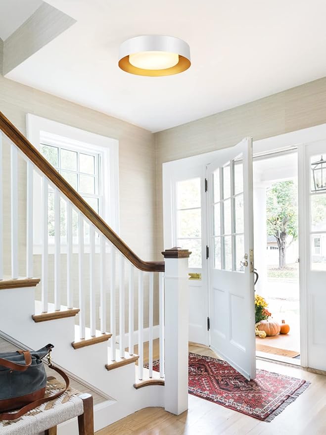 Glass Shade and Design: The shade material is glass, which makes the ceiling light fixture more upscale. With a drum-like shape and a classic combination of white gold, the minimalist ceiling light is perfect for your home