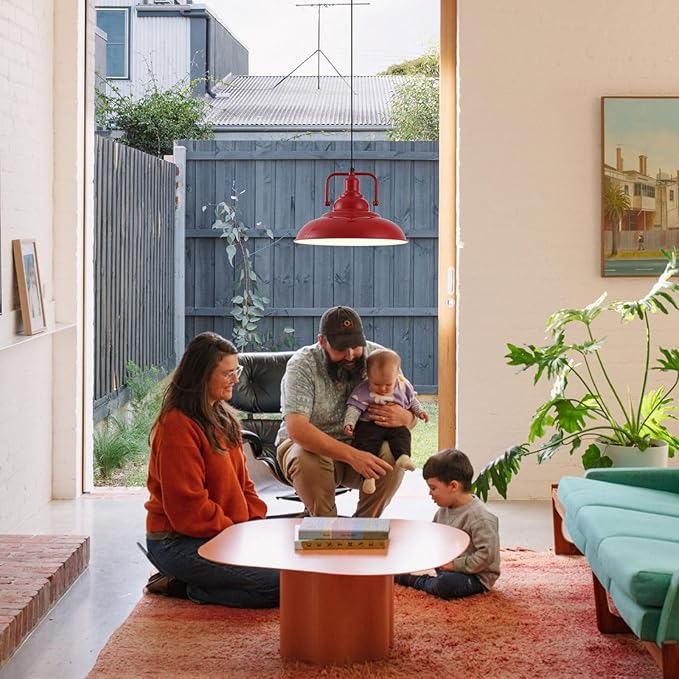 Red Farmhouse Pendant Lights 3 Packs, Metal Pendant Lights Kitchen Island, Industrial Pendant Light, Hanging Island Pendant Light, Barn Light for Kitchen, Living Room, Bedroom, Hallway