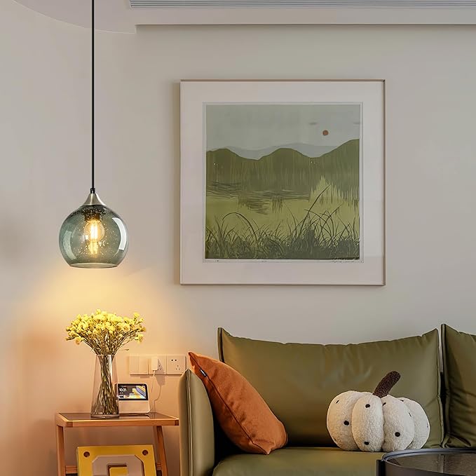 • 【Wide Application】This modern glass hanging light fixture is perfect for a wide range of applications, including kitchen island, coffee shop, bathrooms, living room, dining room, hallway, and loft.