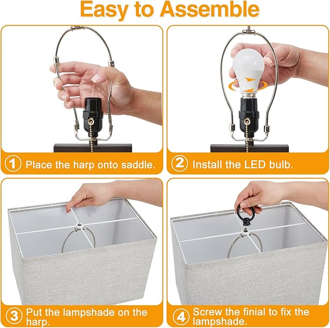• 【Simple Assembly & Pull Chain】 The bedroom lamps feature a convenient pull-chain switch for easy operation. Assemble in minutes: attach the pole, secure the shade with included rings, and insert the bulbs. Perfect for table lamps for living room or bedside lamps set of 2