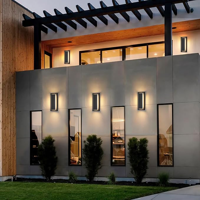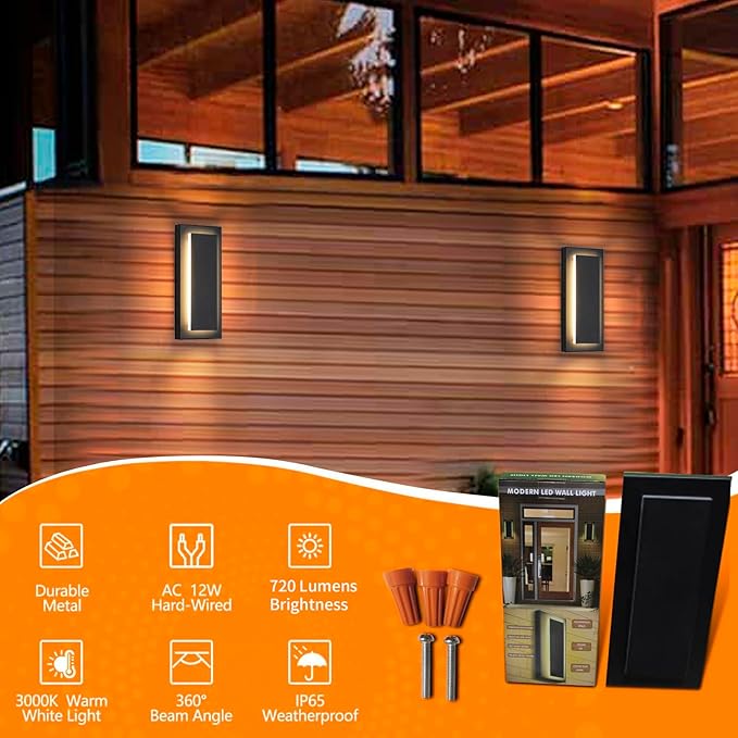 • IP65 Waterproof Outdoor Lights: The porch lights outdoor meets a high standard of waterproof and performs exceptionally well even in wet conditions.Wattage: 9W each light;CRI>80;960LM;AC110V Hard-wired; Illuminate your outdoor spaces with our modern LED outdoor wall light