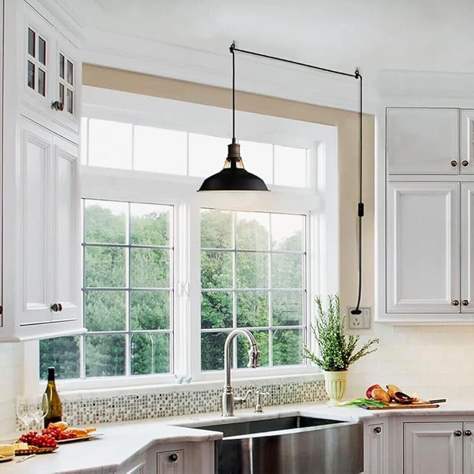• 🚀Classic Industrial & Modern Style: the plug in pendant light blends modern and industrial design perfectly, looks attractive and fashion in all style of rooms; the plug in design allows you to decor your home without limitation