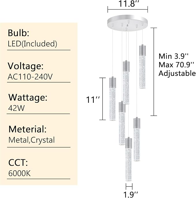 • 【K9 bubble crystal pendants】High quality aluminum lampshade with chrome finished round base. Provide bright lighting and modern design looking for your kitchen, island, dining room, bedroom, hallway, bar, over dining table
