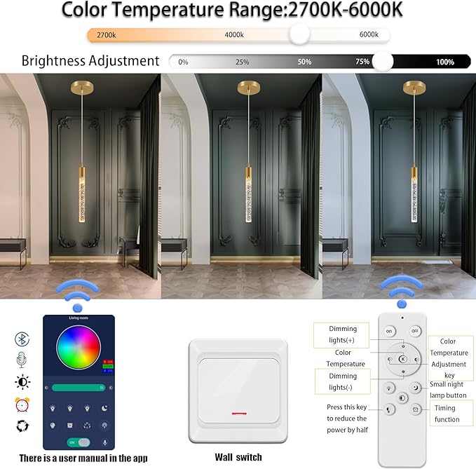 • 【light source and remote control】 8W.720Lumens.The crystal chandelier comes with a remote remote contro and Include LED light source: 3 colors temperature to meet your mood (Color temperature: 2700k-4500K-6000K)and Dimmable brightness(5%-100%)adjustable.Meet all your lighting requirements. Brighten a good mood.Can be used as a decoration. Voltage: 85-256V (universal in the world)