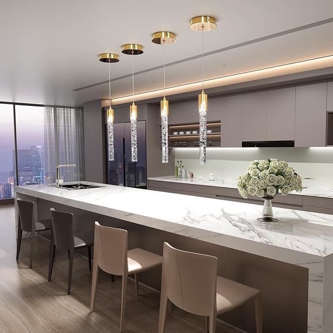 • 【Modern led crystal column pendant light】Remote controlled Led Crystal Chandelier with attractive look,not just a light in a comfortable space,it is also a true highlight during the day, offer you a charming ambiance with bright light source.Its unique design is striking and perfectly complements the modern design of the living area.Can be widely used in living room,kitchen,island,bar,bedroom,entrance,. Highly recommend!