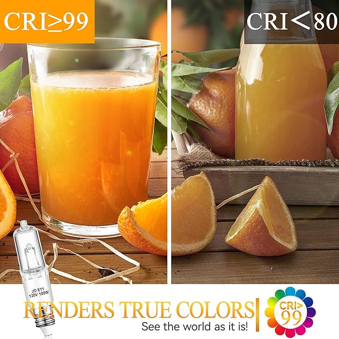 • High-quality light source: Using eco-halogen 100W 1000 lumens, no flicker, no lead or mercury. No uv or Ir radiation. 360° Beam Angle. Reliable and high-quality lighting