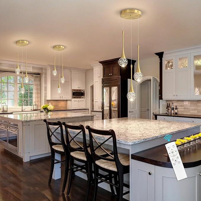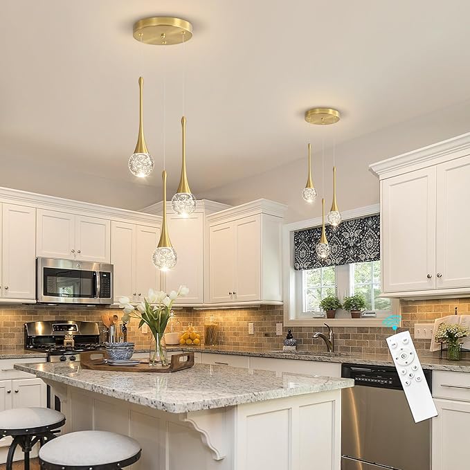 cenzoz 3-Lights Modern Pendant Lights for Kitchen Island LED Dimmable Crystal Glam Ceiling Pendant Lighting Chandelier for Dining Room Hallway Bedroom Corner Lamp Antique Gold