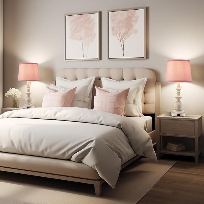 • Design & Style: Drawealth’s Farmhouse table lamps set of 2 is a mixture of rustic and stylish charm. These rustic bedroom lamps are made of high-quality resin material. The simple white lamp body is matched with a pink fabric lampshade, which is retro yet fashionable. Perfect for modern farmhouse, new-traditional, and neutral decor styles.