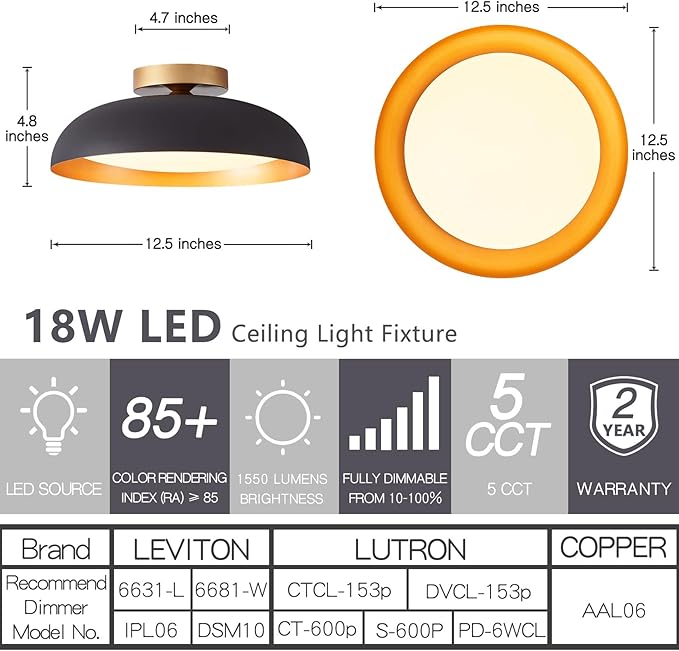 • 5 Color Temperature: Choose your preferred color temperature (2700K to 5000K) with a simple switch before installation.Measuring 12.5 x 4.8 inches,our flush mount lighting fixtures bright equivalent to 100W bulbs.The kitchen light fixtures is dimmable from 10% to 100%. This bedroom light fixture compatible with most standard dimmers.This ceiling lights for bedroom should enhance the atmosphere of your space,not take away from it use modern ceiling light add illumination.Enjoy a versatile lighting experience with this flush mount light