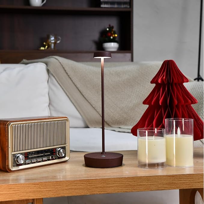 Cordless LED Table Lamp,Rechargeable Battery Desk Lamps, 3 Color Stepless Dimmable Metal Battery Table Lamps, Portable Waterproof Table Light for Indoor/Outdoor/Restaurant (Rust)