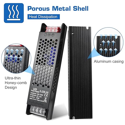 • [Good Heat Dissipation]: The ultra-thin aluminium case with honeycomb heat sink holes facilitates heat dissipation and can prolong the lifespan of the power supply