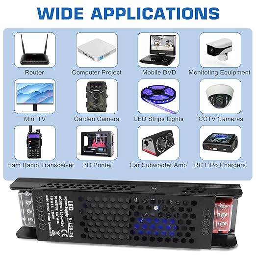 LED Driver 24V 150W 6.5A Slim LED Power Supply, AC 100-250V to 24V DC Adapter, Constant Voltage Transformer for LED Strip Lights, Bulbs, Garden Light, Cabinet Lights