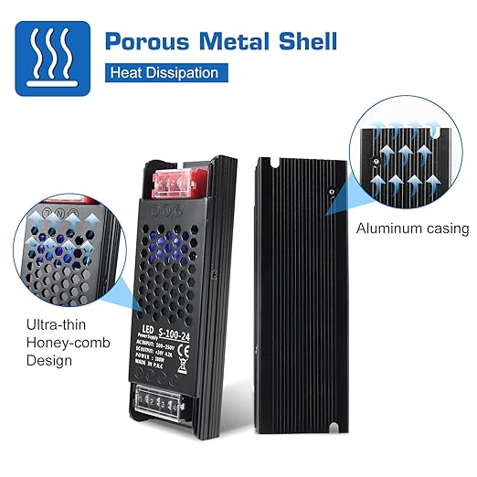 • [Good Heat Dissipation]: The ultra-thin aluminium case with honeycomb heat sink holes facilitates heat dissipation and can prolong the lifespan of the power supply