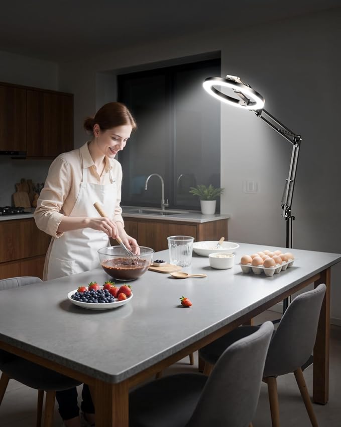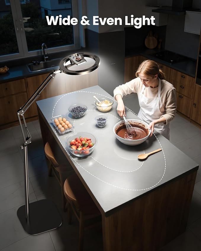 • Super Flexible & Shoot at Any Angle: The ultra-flexible arm on this overhead camera mount tilts, swivels, and extends in just 1 second—offering wider lighting coverage than standard stands. Easily capture overhead cooking, angled tutorials, or full-table DIY without moving your setup