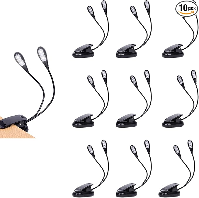 10 Pack Music Stand Lights - Musician Piano Light Clip On, USB & AAA Battery Powered, Eye Care & Portable, LED Book Reading Lamp, 4 Brightness, Ideal for Orchestra, Sheet Music, Guitar (Dual Arm)