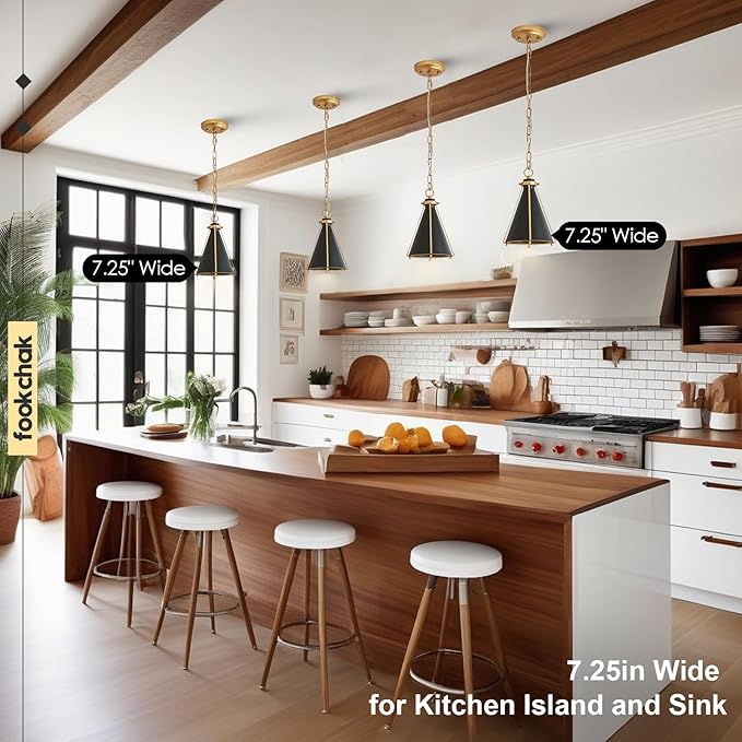 • 【Adjustable Chain】- FookChak black kitchen island pendant light is 7in wide with 39.50in pendant chain. Capable of using onto flat /sloped/vaulted ceiling(Canopy diameter:5in).