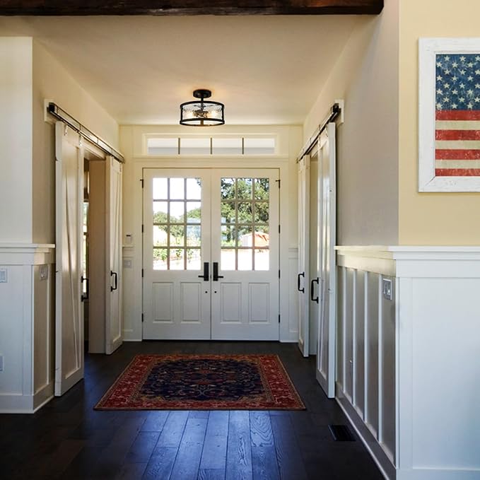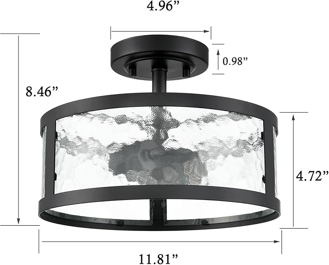 • Black Design & Hammerd Glass :The enhanced rustic bedroom ceiling light combines classic design with a sleek modern shape, resulting in a captivating ambiance that you desire. Harmmered glass disffuse the light to suite your home