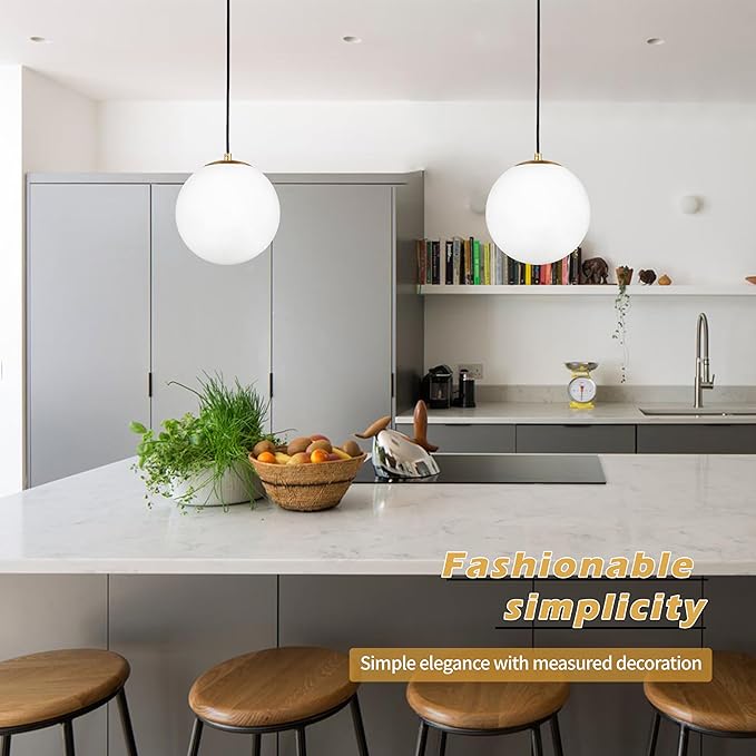 • [ Size and Design ] This black ceiling milk white pendant wire globe light has a diameter of 10 inch, ceiling tray size of 6 inch, and the adjustable maximum length of the pendant wire is 79 inch. White milk glass globe pendant light is ideal for a variety of spaces, a pendant light featuring a sleek white glass diffuser that adds a touch of style and warmth to any room.