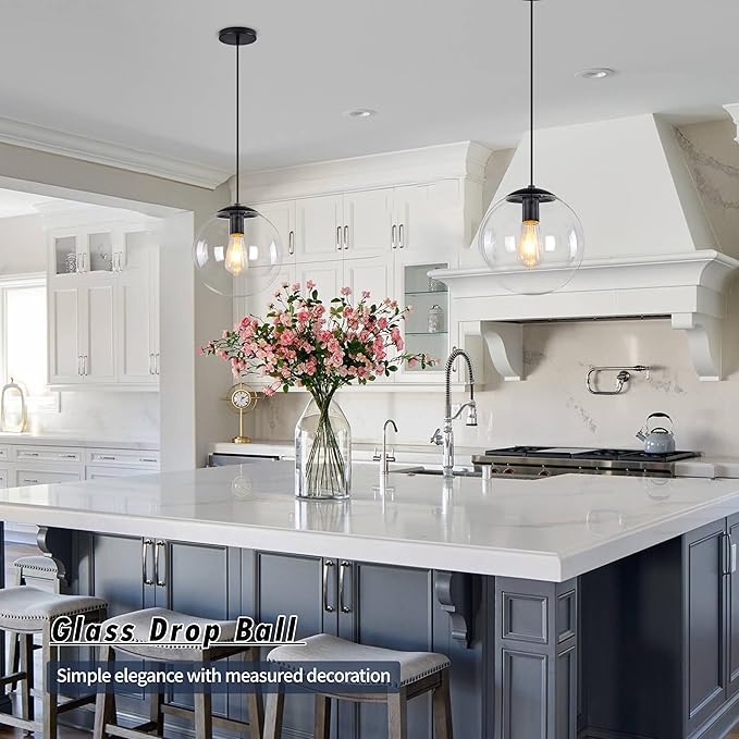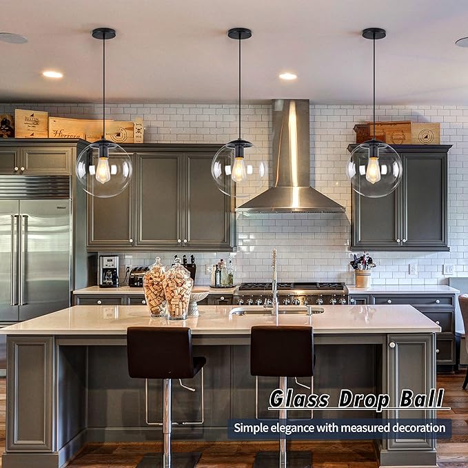 • [ Size and Design ] This black ceiling clear glass pendant light globe light has a diameter of 10 inch, ceiling plate size of 6 inch, and the maximum adjustable length of the pendant light cord is 79 inch. The clear glass globe pendant light is ideal for a variety of spaces, a pendant light with clear and crisp glass, adding a touch of style and warmth to any room.