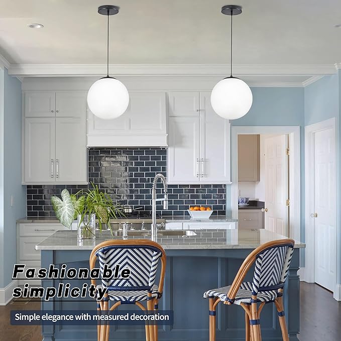 • [ Size and Design ] This black ceiling milk white pendant wire globe light has a diameter of 10 inch, ceiling tray size of 6 inch, and the adjustable maximum length of the pendant wire is 79 inch. White milk glass globe pendant light is ideal for a variety of spaces, a pendant light featuring a sleek white glass diffuser that adds a touch of style and warmth to any room