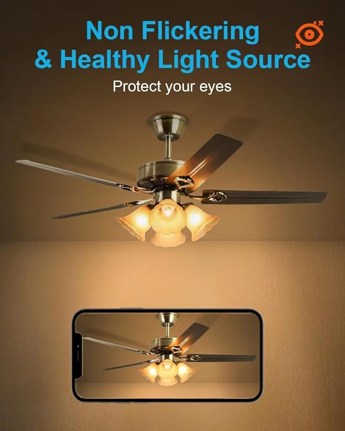 • Advanced Dimming Performance: The dimming feature of our E12 candelabra bulbs utilizes the latest light source technology, providing precise and stable brightness control from high to low. By adjusting the brightness, you can create different lighting effects to suit various scenarios, enhancing user comfort. Moreover, setting the brightness to an appropriate level can reduce glare and eye strain.