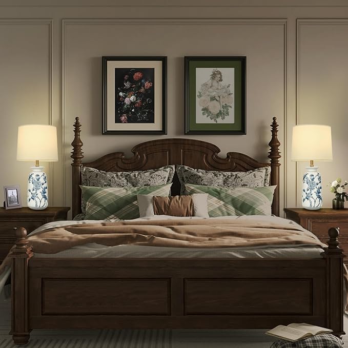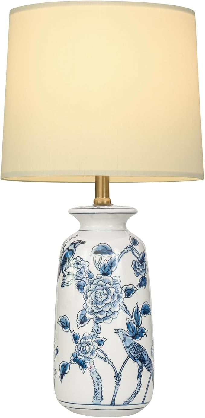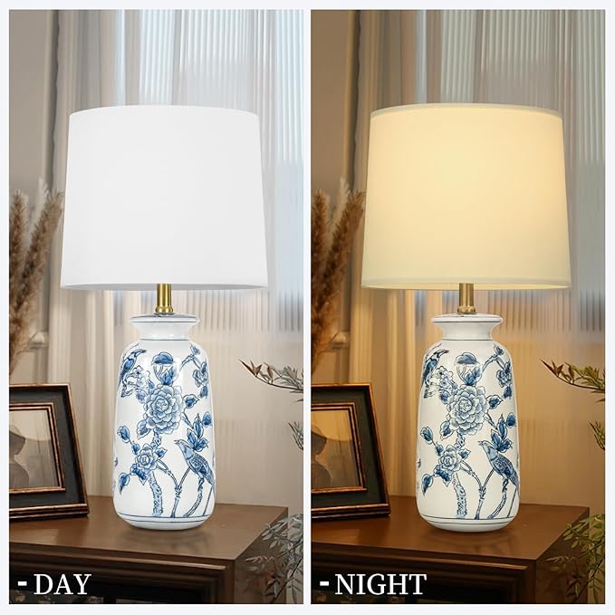 • Elegant & Traditional Ceramic Lamps for Bedroom: With a beautiful birds and flowers appearance, the chinoiserie lamp is made of a sturdy ceramic jar lamp body, white barrel lampshade, and sturdy metal parts. The blue and white table lamp needs to be assembled, but it's very easy and the assembly can be completed in minutes, and we also provide an assembly manual. (Blub not Included)