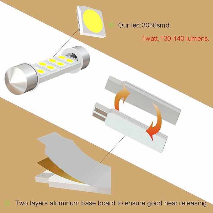 • [Completely replacement:] The 578 LED bulb is completely replacement of Festoon Miniature Halogen light bulbs such as 211-2 212-2 214-2 6451 6413 6429 561 562 563 567 564 566 570.