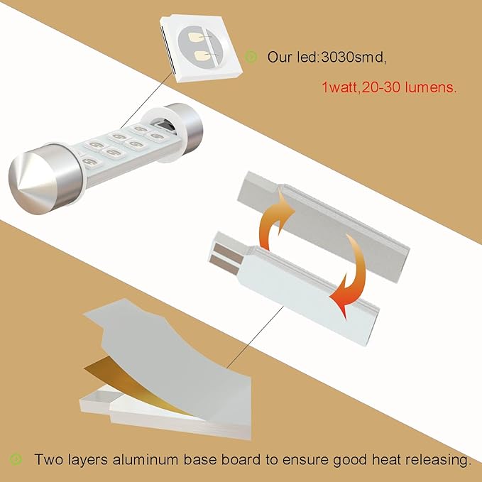 • [Top Quality Components:] The components of the led bulb is 8 pcs super bright chipsets 3030 1 watt led with the individual light 20-30 lumens.Two layers aluminum base board to ensure good heat releasing,the operating life of the bulb is up to 50,000 hours.