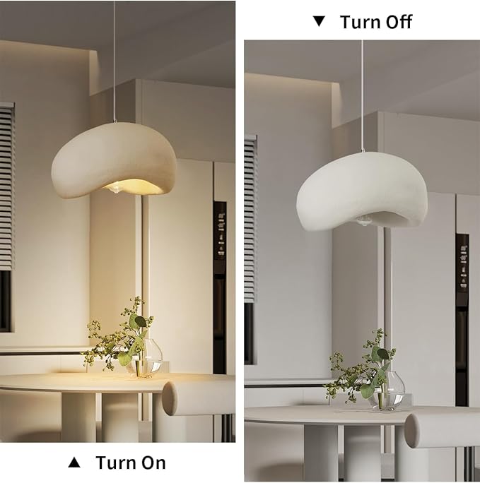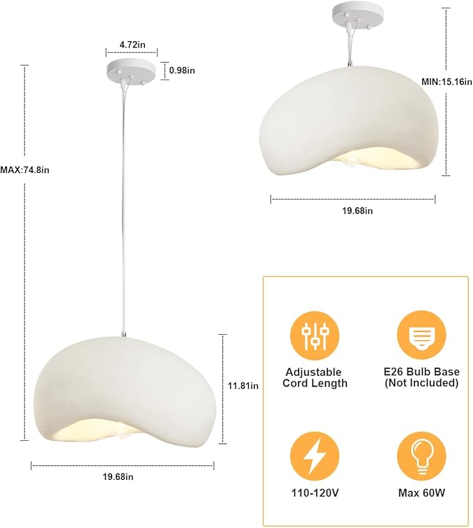 • 【Large Pendant Light Fixture】WILON 19.7'' modern pendant light has a japandi wabi-sabi style and an off-white colour. Not only will the hanging light fixture add a touch of minimalist style, but the unique penant lamp will also create cosy lighting for your room.