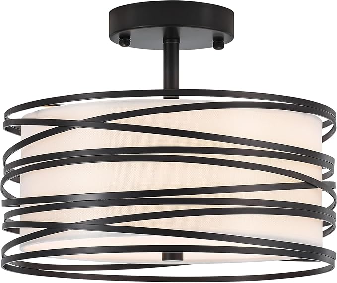 • 【High-Quality Materials】 Meticulously constructed with black finish metal and white linen lampshade, our semi flush ceiling light fixture exudes durability and quality. Each detail is carefully considered, creating a visually striking centerpiece for your living space.