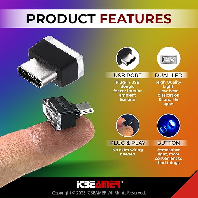 • ⭐ Plug-and-Play Convenience – No wiring or setup needed. Just plug into any USB-C port in your car, SUV, or truck and enjoy subtle interior illumination.