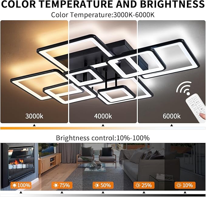 • šŸ“Large Flush Mount Ceiling Light:39.37''x31.5''semi flush mount ceiling light provides 100W, 8000lm LED lighting, 110V,LED chips have a lifetime of up to 50,000 hours,5.5'' from ceiling makes it suitable for low ceilings