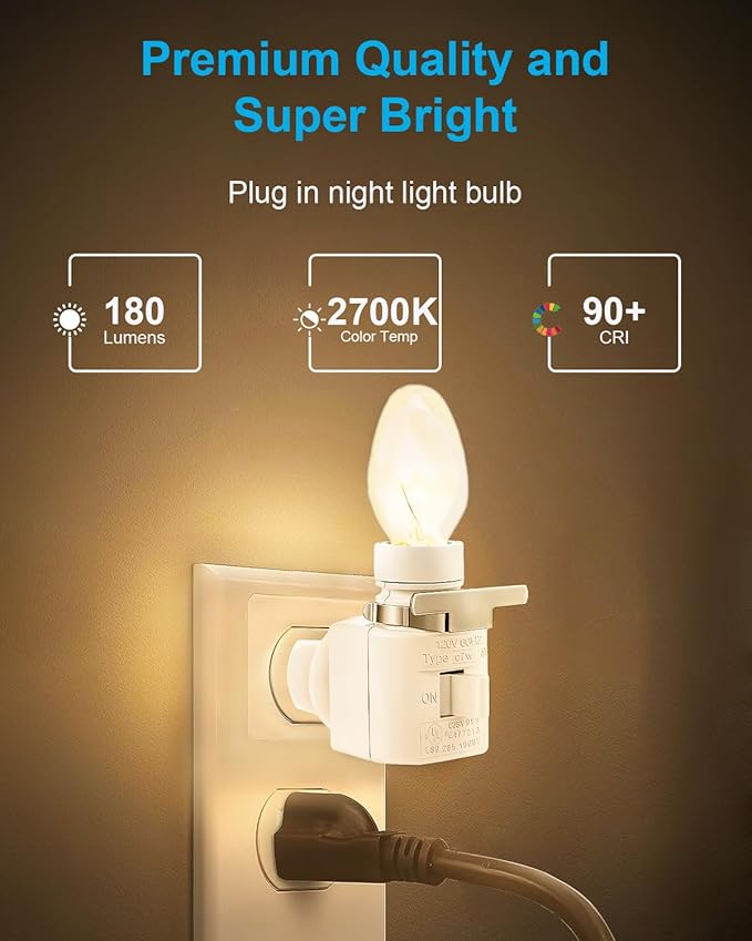 • Classic & Beautiful Light Source: Our e12 c7 wax warmer bulbs use high transparency glass, the light is uniform and soft, taking care of both eyes, providing comfortable illumination with a color rendering index (CRI) of 90+. This high CRI ensures that all objects display their natural colors, making them appear more vibrant. The bulbs are flicker-free and do not emit UV or IR radiation, effectively protecting your eyes and those of your family