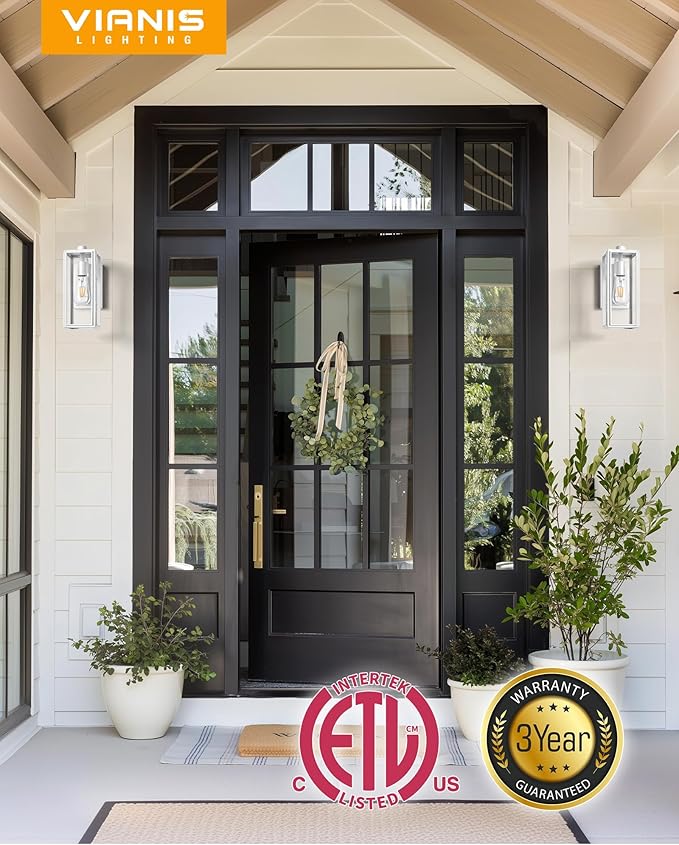 • 👍[Rust and Water Resistant] Vianis Outdoor Wall Sconce is made of sturdy and durable materials. Designed for the outdoors, the porch outdoor light features a high waterproof rating, seamless connection, and rust and corrosion resistance. Whether it's raining or snowing, hot or cold, these outdoor wall lights won't rust or corrode after years of use. You no longer need to replace them frequently due to poor quality.