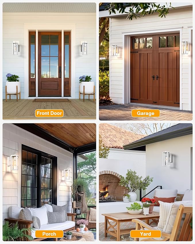 • 👍[Easy Installation, Strong Compatibility] Our outdoor patio lights are ready to install, say goodbye to the tedious assembly process. It comes assembled and ready to install upon receipt. The opening at the bottom also makes replacing the bulb a breeze, no tools required. Our patio exterior wall light is suitable for any E26 socket bulb, which can provide you with a variety of choices for your outdoor lighting.
