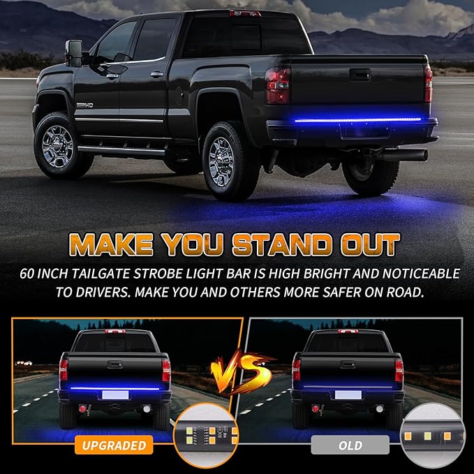 • 【MAKE YOU STAND OUT】This upgraded under tailgate police light bar comes with 360 high brightness LEDs. Even during the day, the truck rear lights are bright and noticeable to the driver miles away. Adds a clear visibility to the rear drivers. Makes the vehicle much more noticeable and safer.