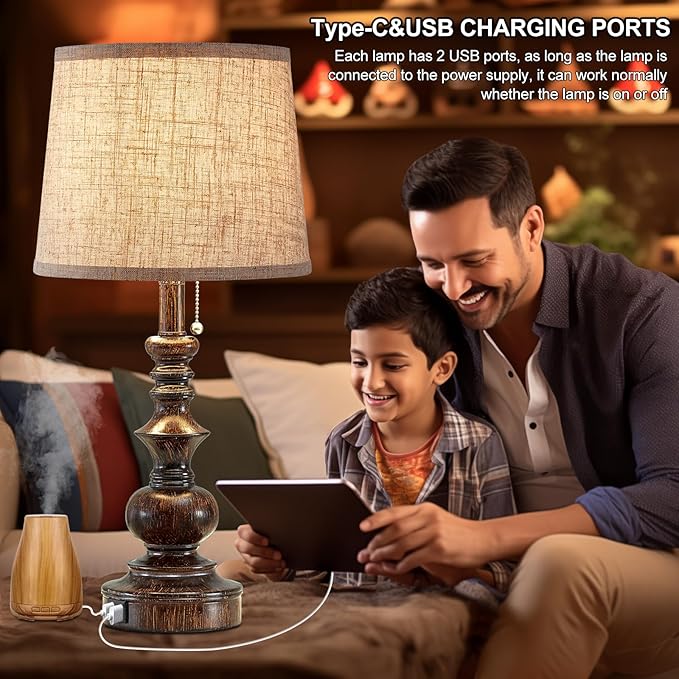• 【Convenient USB Charging Ports】: Experience the ultimate convenience with Drawealth's farmhouse lamps set of 2. Featuring built-in USB-C and USB-A charging ports, these modern farmhouse lamps ensure that your devices stay powered up, whether the lamp is on or off. Ideal for bedrooms, living rooms, studies, and more, these rustic lamps seamlessly integrate technology with traditional craftsmanship, enhancing your everyday life with ease.