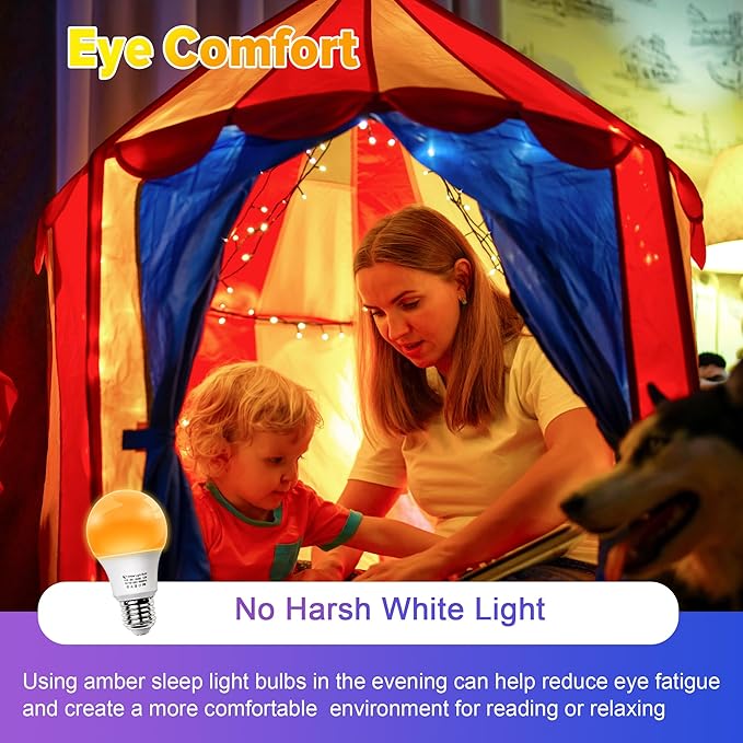 • Versatile Application: With standard E26 socket, these no blue light bulbs can be used with most fixtures as bedside lamp, reading light, or general ambient lighting. Ideal for bedrooms, nurseries, or any area where tranquility is desired.