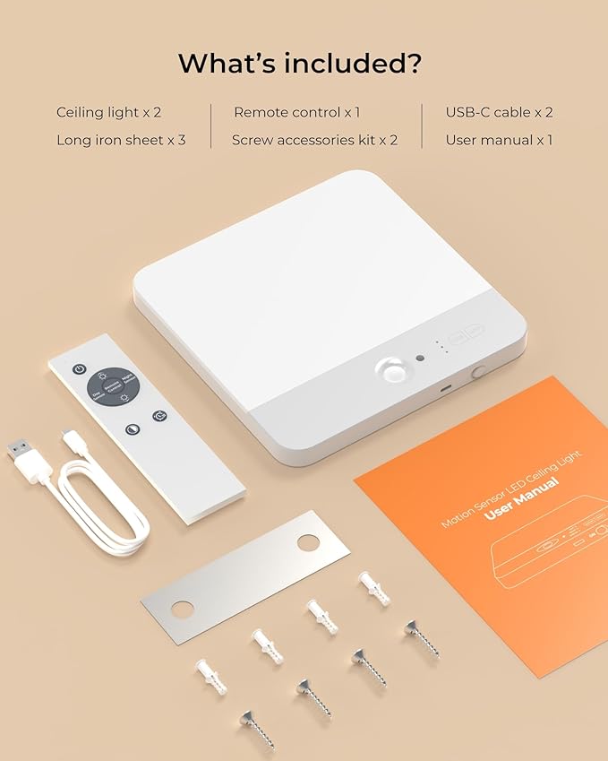 • Cordless Installation: Install in 30 seconds without wiring or drilling. Built-in magnets and metal plates allow easy attachment to ceilings, facilitating hassle-free removal for charging or repositioning
