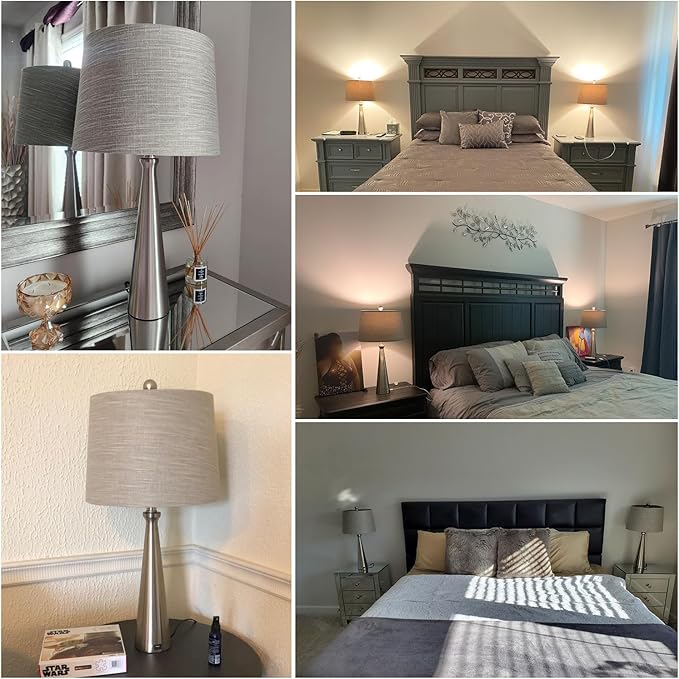 • Choice for Safety: The table lamps for living room are constructed of the sophisticated brushed steel body. Each nightstands lamp use one dimmable bulb and features an E26 socket.(Bulb included)