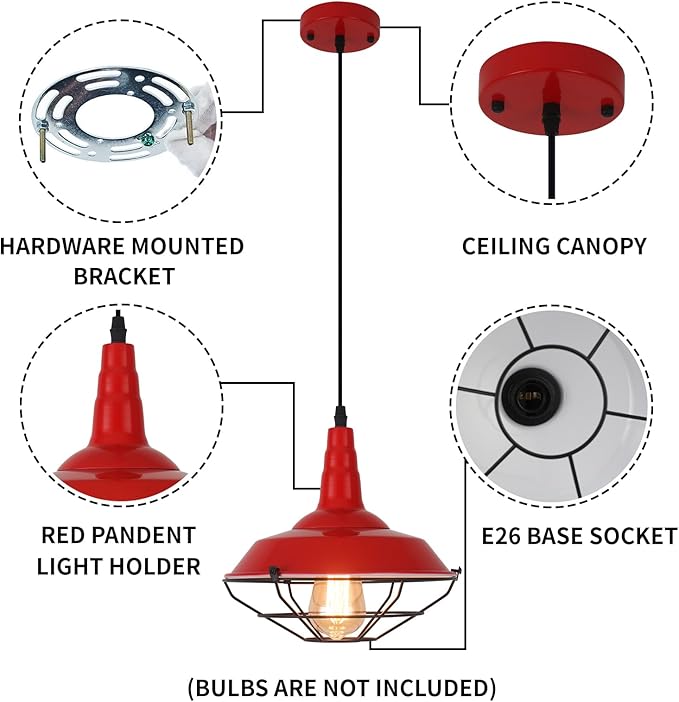 Installation Requirements:This farmhouse pendant light can be installed in flat and sloping ceiling. Hardwired. E26 US standard lamp socket, compatible with a variety of bulbs(Max:60W).Likes Edison, CFL or LED light bulbs, 110-120V. [NOTE]:BULB NOT INCLUDE