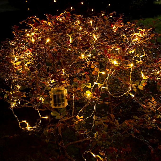 200 LED Battery Operated Remote Control Rainproof String Fairy Lights Indoor/Outdoor for Christmas Tree Xmas Garden Party (Warm White)