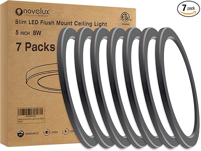 • Ultra-Slim & Versatile Design: Discover the sophistication of our NOVELUX ceiling light, which boasts an ultra-thin profile of just 0.63" and comes in two elegant fitting size: a 5-inch or a 5.4-inch diameter. Designed to blend seamlessly into any ceiling, it offers a sleek and modern appearance. Ideal for confined spaces such as entryways, bathrooms, balconies, and corridors, its versatility guarantees stylish illumination in both dry and damp settings