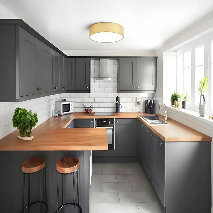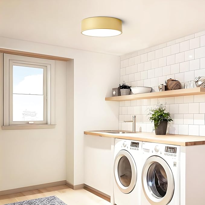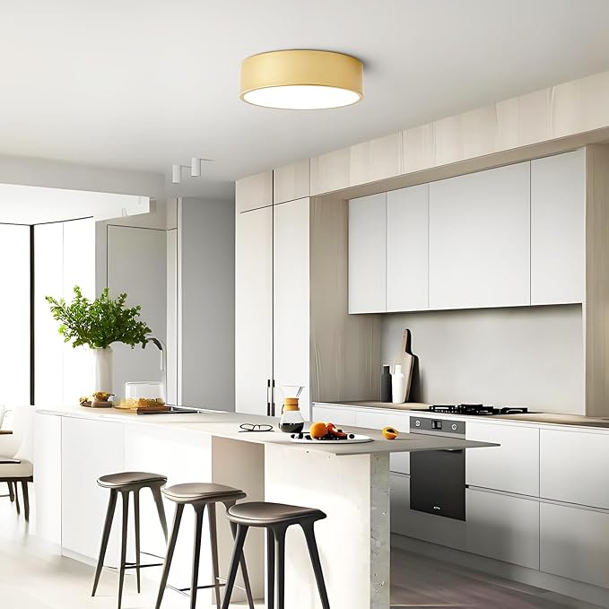 Dimmable Modern Flush Mount Ceiling Light Fixture,Painted Gold Round LED Ceiling Lights Fixtures,5CCT 2700K-6000K Lighting for Kitchen Hallway Bedroom Laundry Room Entryway Closet 11.81 inch