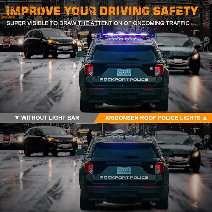 • MAXIMIZE THE VISIBILITY - With 104 high intensity LEDs with spotlight TIR lens ensure more effective warning to other vehicles. This rooftop emergency lights is bright enough even during the day, visible from 360°, making you and others safer on the road.