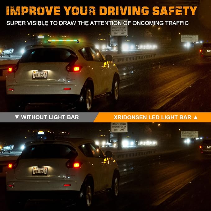 • MULTI-PURPOSE USE - This 37" amber and green emergency lights is great for emergency vehicles, law enforcement cars,mail postal service, construction equipment, plow tractors, tow trucks, pickups, roadside assistance vehicles, security guard patrol vehicles, escort vehicles and volunteer personal vehicles.