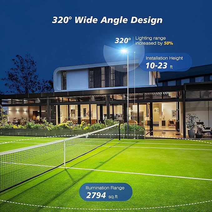 • [ 4-SIDES ULTRA WIDER ANGLE ] New WYWNA solar street lights outdoor, the solar lights outdoor wide angle design brings a illumination 320-degree lighting and equipped with high-efficiency 1680 pcs extremely bright 5730-type lamp beads, delivering an incredibly bright illumination. It can provide a wider range than ordinary street lights and cover an area of 2794sq.ft.