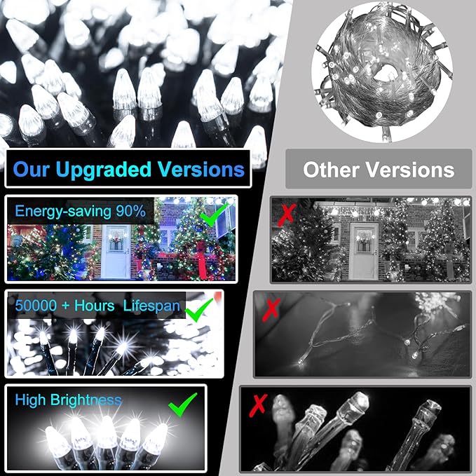 • Light up your festive celebrations with our incredibly long and bright 502ft Christmas lights! Boasting 1500 enhanced LEDs, these super-long string lights brighten any outdoor area, making them perfect for transforming your garden, patio, or backyard into a vibrant space ideal for holiday gatherings and celebratory events