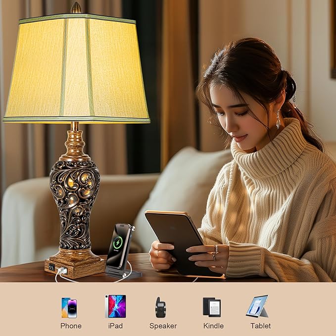 • Lamps With USB Ports: These lamps come with convenient USB charging ports (5V 2.1A) .that allow you to charge 2 electronics simultaneously. Works whether the nightstand lamp is on or off. Super convenient for you and your family.