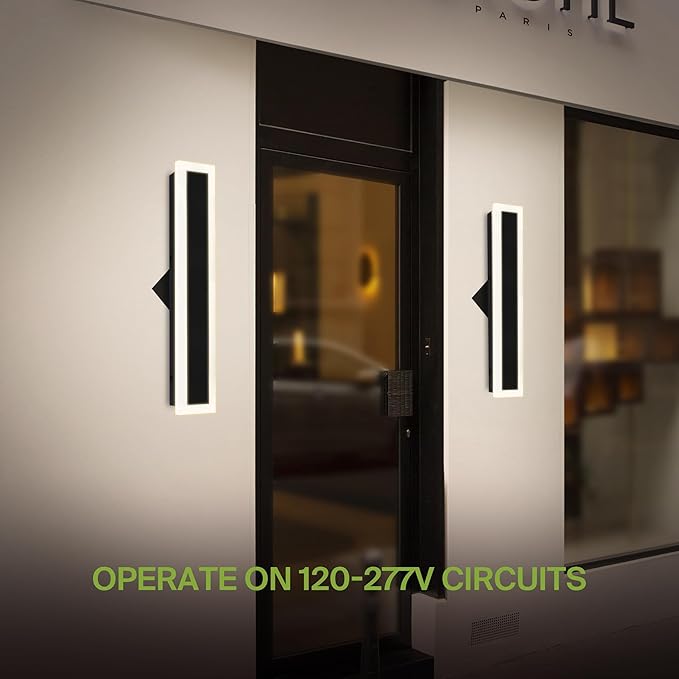 ASD LED 24" Long Wall Mount Light Fixture, Outdoor & Indoor Linear Sconce | 3CCT, Dimmable, Waterproof, Anti-Rust, ETL Listed | 24W 2000LM 3000-5000K 100-277V | Exterior Porch Lighting | Black